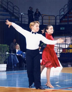| Vice campioni Italiani Mia Gabusi & Sandro Mazzuferi – Lo scorso 1 e 2 Dicembre 2006 presso il palasport di Foligno si sono svolti i Campionati Italiani delle classi B2 danze standard e Latino americane. Erano presenti in giuria per l’Emporio Danza Gabusi la M° Francesca Mazzacurati e il M° Diego Vecchi. Hanno partecipato per l’ Emporio Danza Gabusi nella categoria 46/55 con un ottimo 5° posto gli atleti Franco Baraldi & Giancarla Tonelli, mentre nella categoria 10/11 sempre per le danze latino americane gli atleti Mia Gabusi & Sandro Mazzuferi che hanno conquistato il titolo di VIce Campioni Italiani 2006. Mia e Sandro vengono da una stagione favolosa ricca di successi e questo titolo di vice campioni Italiani ne è sicuramente il più degno finale. Mia e Sandro hanno già raggiunto prestigiosi risultati, da ricordare il “54° International Championships 2006”. Mia e Sandro infatti fra più di 30 coppie di atleti si sono infatti classificati al sesto posto, come unica coppia italiana presente in una netta maggioranza di atleti russi. La cosa più importante da sottolineare è l’età di Mia, perché questa bambina, figlia d’arte di Davide & Claudia Gabusi ha soli 7 anni, compiuti da poco ed è quindi la prima bambina di questa età ad ottenere risultati così prestigiosi. Ricordiamo inoltre il 6°posto al Feinda Italian Open”, 6° “IOC Alassio Open” e i quarti di finale al German Open Championships. Mia è cresciuta ballando nella scuola dei genitori, “l’Emporio Danza Gabusi”, non come altre allieve durante corsi collettivi, ma a tutte le ore, ballando e dimostrando già dai primi passi imparati da lei stessa per emulare la madre, di possedere tutte le caratteristiche sia tecniche che espressive per diventare una ballerina e con Sandro, talentuosissimo ed elegante ragazzo che di anni invece ne ha 10, Mia ha sicuramente iniziato la sua carriera, nonostante sia solo un anno che ballano insieme. Questa giovane coppia dall’ avvenire assicurato incanta con il suo atteggiamento adulto, l’espressività recitativa oltre che ad una buona tecnica, ma è in realtà il loro affiatamento, la loro grazia e disinvoltura che contagia il pubblico. L’Emporio Danza Gabusi augura Buona fortuna a questa coppia speciale e si congratula ancora con tutti gli atleti per i risultati ottenuti. |