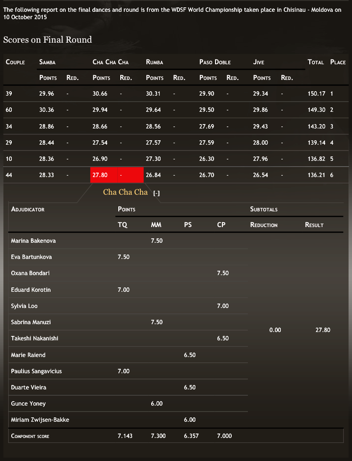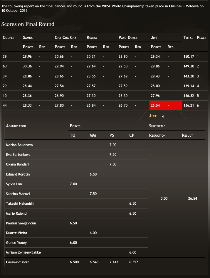 Mia Gabusi e Leonardo Lini dopo il successo ai campionati Europei 2015, conquistano la finale ai campionati del Mondo A Chișinău in Moldova, Sabato scorso, il 10 ottobre 2015 su 73 coppie iscritte, la coppia è entrata a far parte delle sei coppie finaliste, aggiudicandosi un meritatissimo 6° posto, e a dire il vero se non fosse stato per la solita situazione ormai una costante, dove specialmente un giudice che da anni lavora in Italia, ha costruito il suo lavoro in Italia, ha cercato in tutti i modi di penalizzare la coppia Italiana con il peggior punteggio possibile assegnato alla coppia, al posto, almeno per riconoscenza al nostro paese, di allinearsi al voto più o meno unanime del pannello giudicante. Questo avrebbe portato la coppia ad ottenere il 4° posto. Dispiace l’atteggiamento di questo giudice fuori dal coro. I nostri complimenti a Mia e Leo, che dalla parte loro hanno ancora un’altro intero anno di lavoro per puntare al gradino più alto. Bravissimi e complimenti….